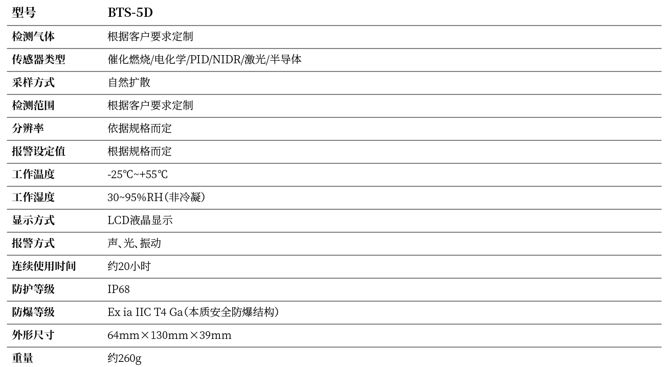 可燃性气体 | 硫化氢 | 一氧化碳 | 氧气 | 其他气体依订货要求